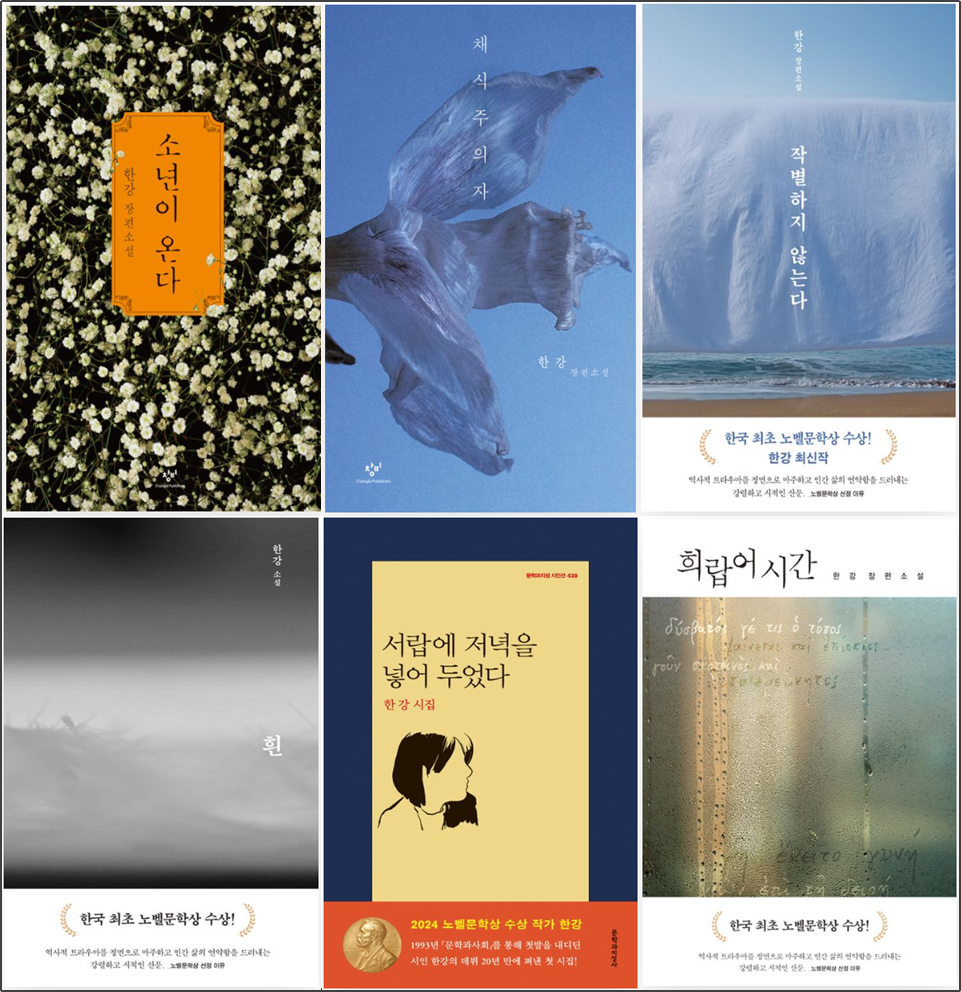 국내에서는 2024년 10월 노벨문학상 발표와 동시에 베스트셀러 상위권에 한강 작품들이 줄을 세웠는데 2달도 안된 기간만에 2024년 전체 도서 판매량 1~3위까지 휩쓸었습니다.