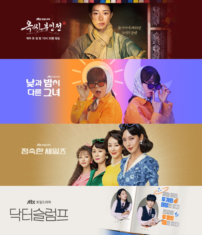 최근 1년 종편 종영 드라마 시청률 순위 5위까지도 [낮과 밤이 다른 그녀] 11.7%, [정숙한 세일즈] 8.6%, [닥터슬럼프] 8.2%, [끝내주는 해결사] 5.8%, [가족X멜로] 5.3% 등 모두 JTBC가 점령하고 있습니다.